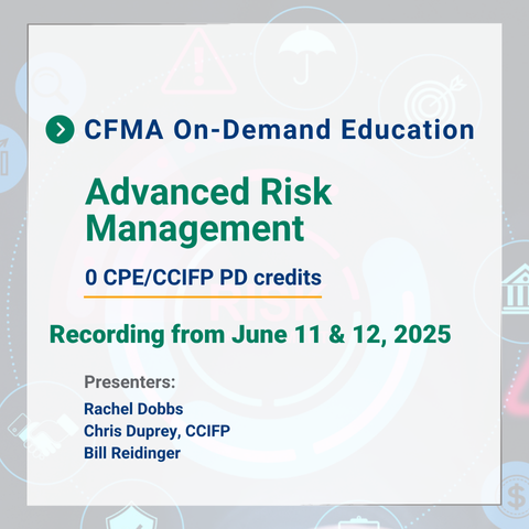 We apologize for the brief delay in launching CFMA’s new education and certification platforms. The CCIFP Recertification deadline has been extended to April 30, 2025. We truly appreciate your patience as we put the finishing touches on changes that are designed to improve and enhance your CFMA experience!